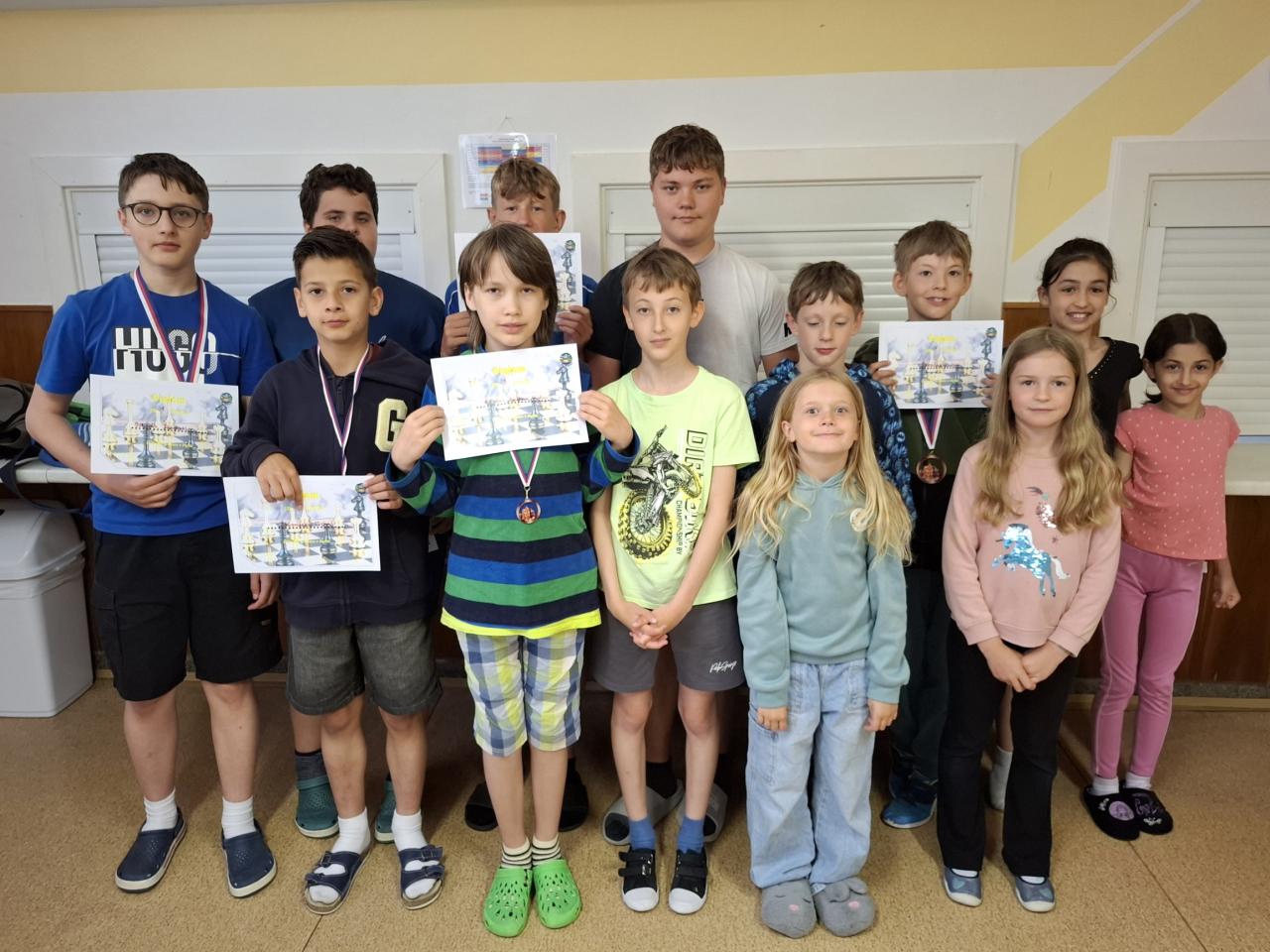 V úterý 24.6.2025 jsme usppořádali další ročník šachového přeboru školy ve dvou kategoriích 3.-5. ročník a 6.-9. ročník. Turnaje se zúčastnilo celkem 13 hráčů.
